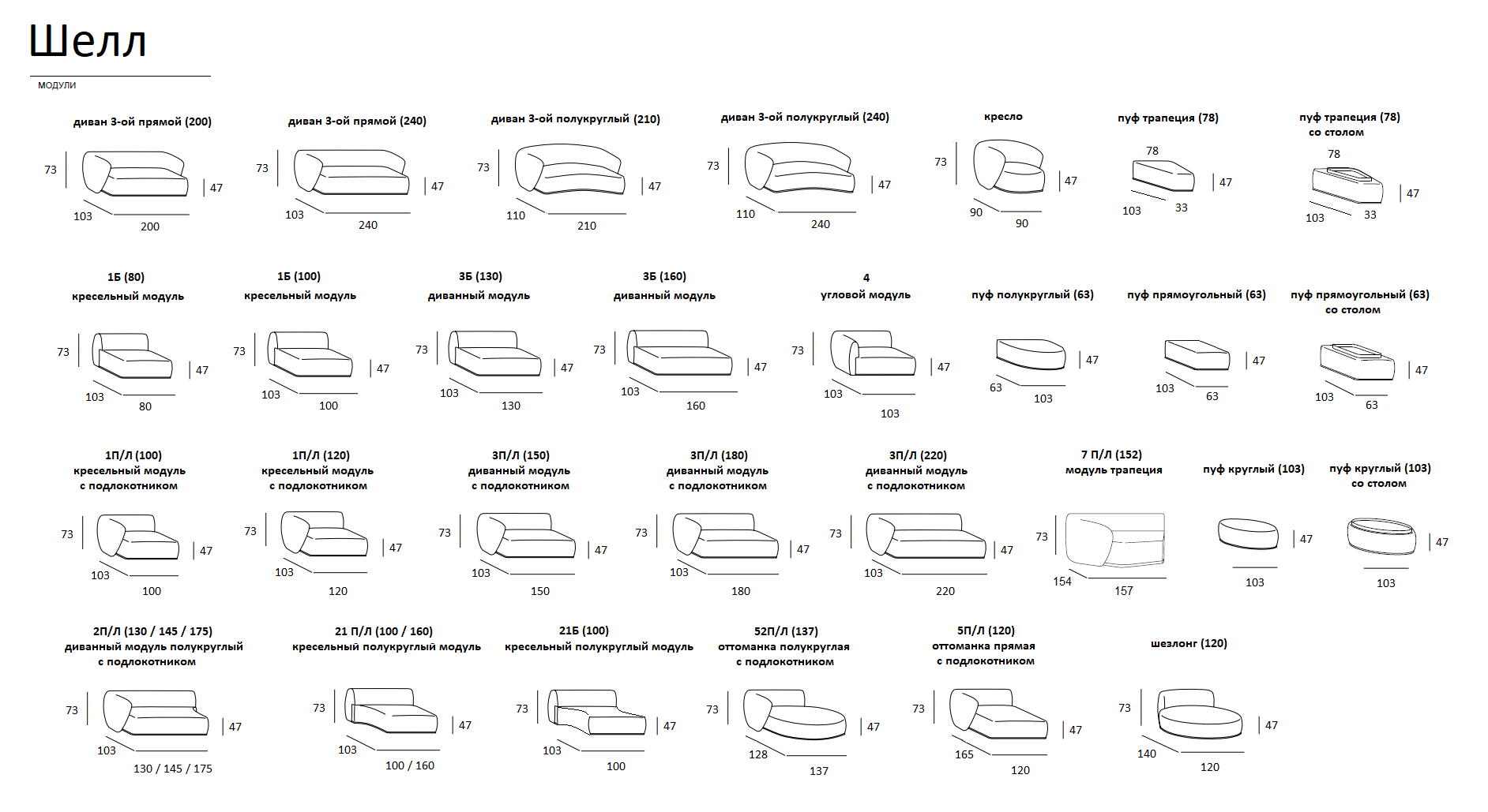 Шелл - это современная коллекция с уютными закругленными формами и утонченным дизайном! Благодаря разнообразию модулей данная модель идеально подходит для различных интерьеров и комнат