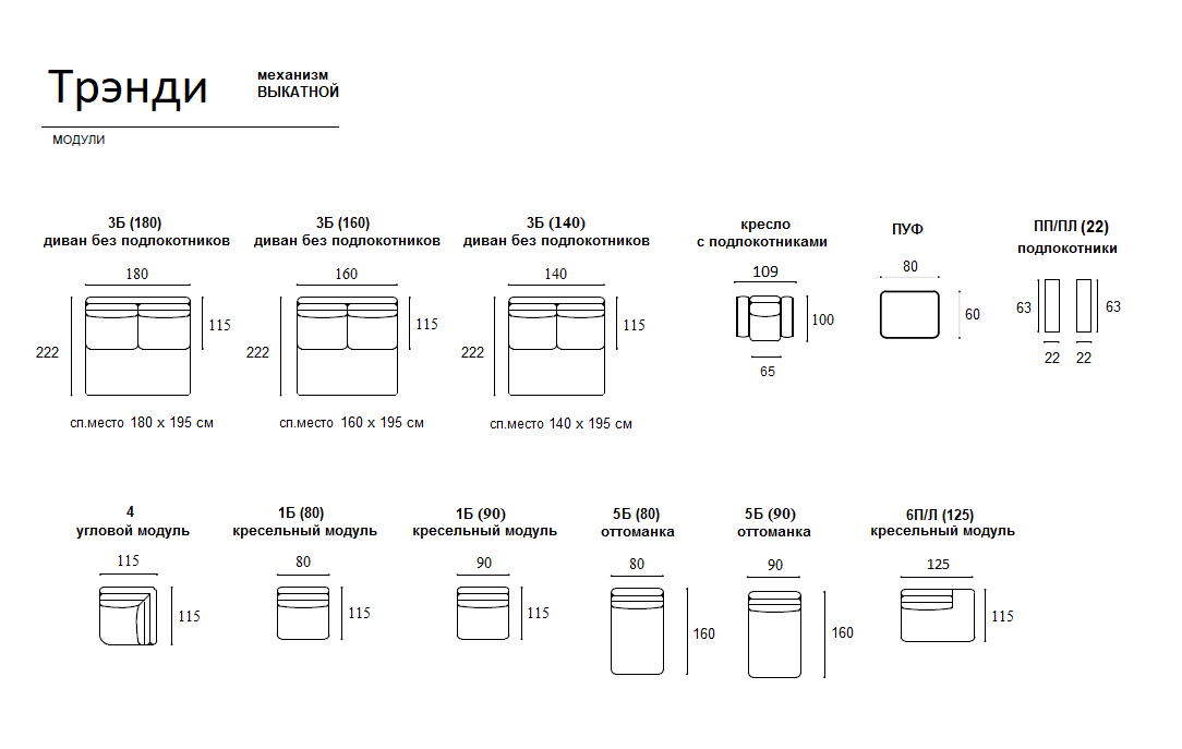 - Спальное место 195 * 140/160/180 см